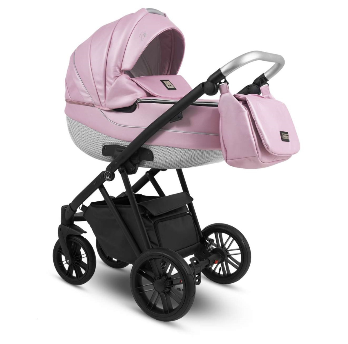 Карбоновый короб из высококачественного пластика в сочетании с обшивкой из современной перламутровой эко-кожи. Люлька имеет встроенную, многоступенчатую регулировку подголовника и вентиляцию. Регулируемый капор с большим козырьком защищает ребёнка от солнца и ветра во время прогулки. Козырёк, вставки и ручка выполнены из эко-кожи. Капор люльки и прогулочного блока, с бесшумной регулировкой, оснащены открывающимися вентиляционным окошком со встроенной москитной сеткой, обеспечивающими дополнительную вентиляцию в жаркие дни, накидка на люльке закрывается на молнии, что обеспечивает дополнительную защиту в холодное время года. Ортопедический кокосовый матрасик и внутренняя обшивка из 100% хлопка подарят ребёнку мягкость и комфорт.
