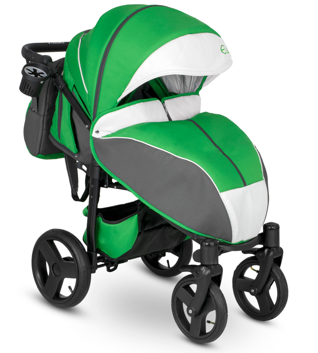 Практичная конструкция шасси отличается прочностью, эргономикой и долговечностью. Шасси изготовлено из легкого алюминия, благодаря чему вес коляски составляет 11.7 кг. Надувные большие колеса усовершенствованного типа гарантируют отличную проходимость по разному типу дорог круглый год. Маневренность коляски обеспечивается поворотным механизмом передних колес.