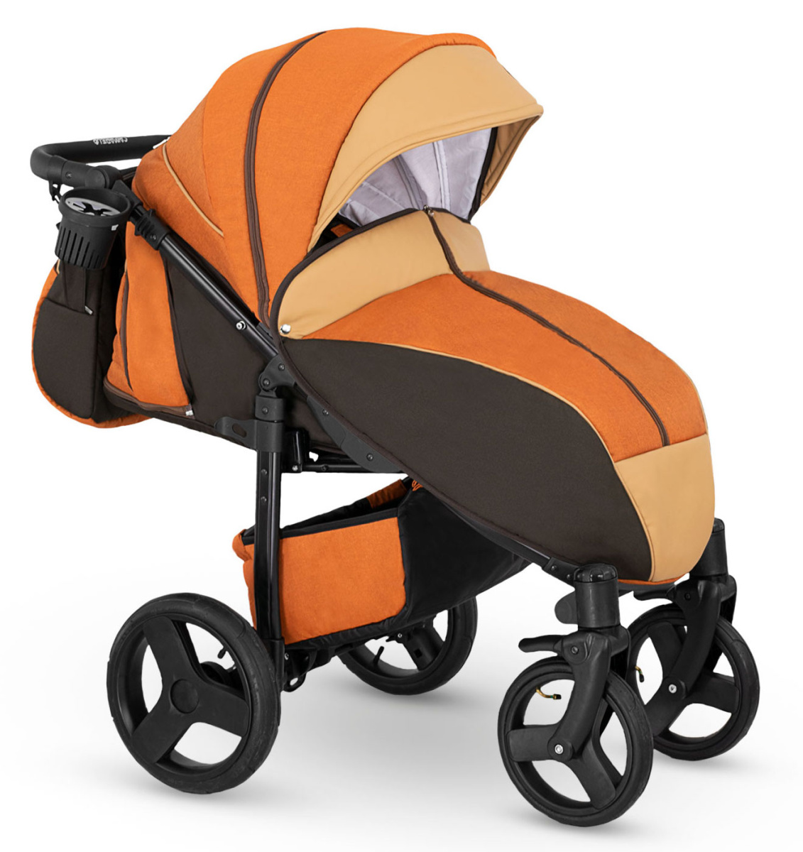 Прогулочная коляска Camarelo Elf черная рама оранжевый джинс/бежевый