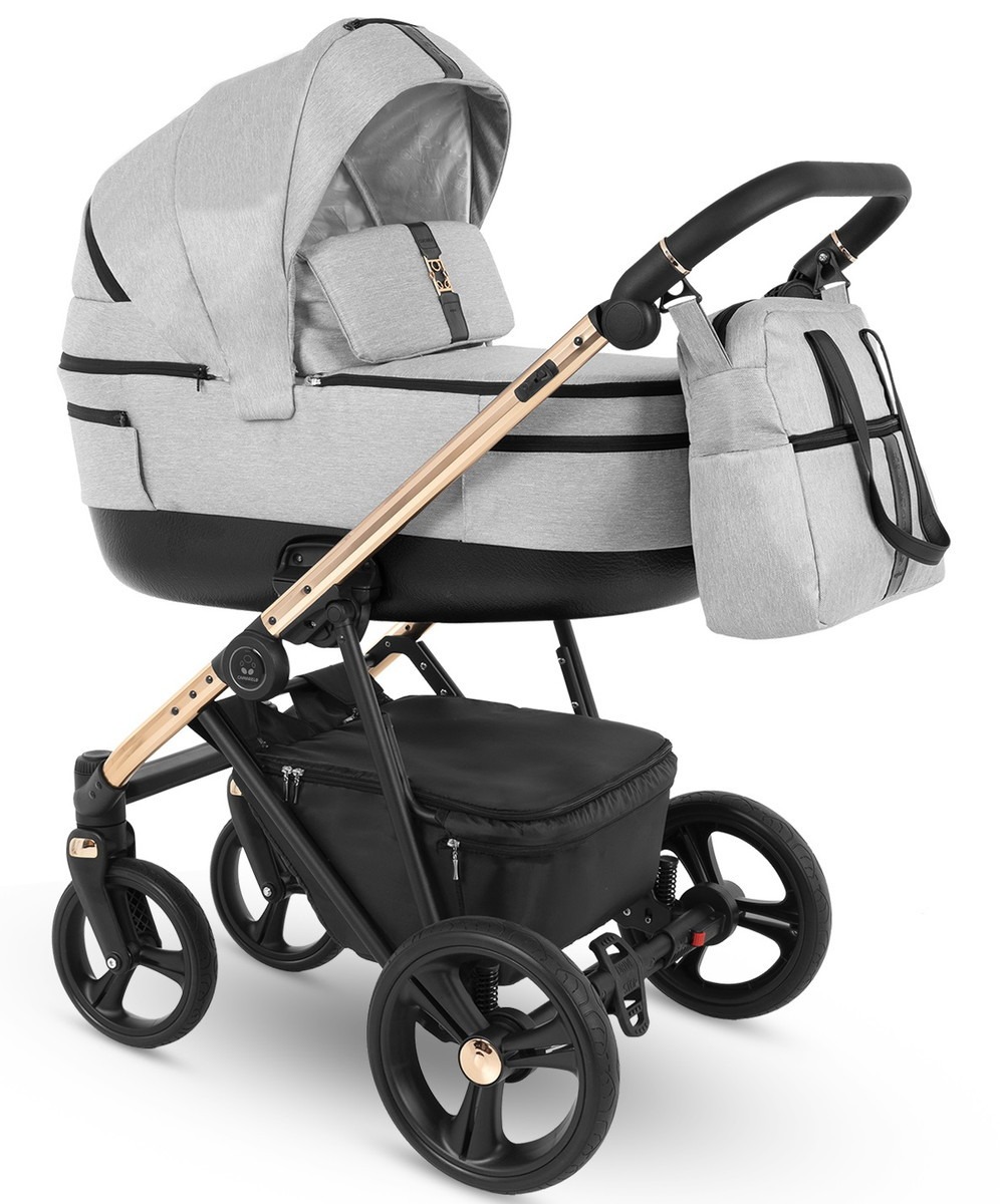 Коляска Camarelo Belagio 2 в 1  - элегантная, многофункциональная коляска с просторными блоками на лаковом шасси, оснащенная современными гелиевыми колесами.
