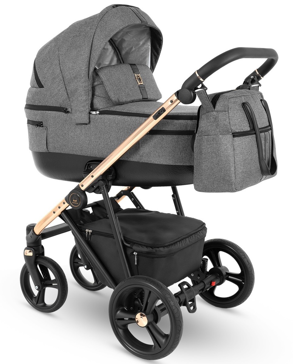 Коляска Camarelo Belagio 2 в 1  - элегантная, многофункциональная коляска с просторными блоками на лаковом шасси, оснащенная современными гелиевыми колесами.