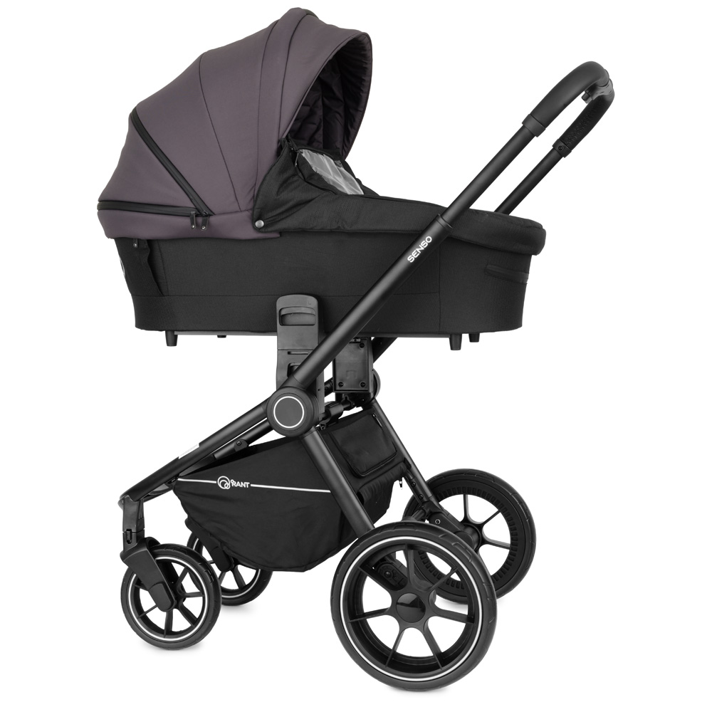 Коляска Rant Senso оснащена большой и вместительной люлькой с эргономичной ручкой для переноски. Подкладка из 100% хлопка. В комплект входит мягкий качественный матрас. В самой люльке и в капюшоне есть вентиляционное окно, что позволяет родителям гулять даже в жаркую погоду, не опасаясь дискомфорта для малыша. Накладки на ножки крепятся к люльке на молнию, имеется высокий отворот для защиты юного пассажира в непогоду. В отвороте есть смотровое окошко.