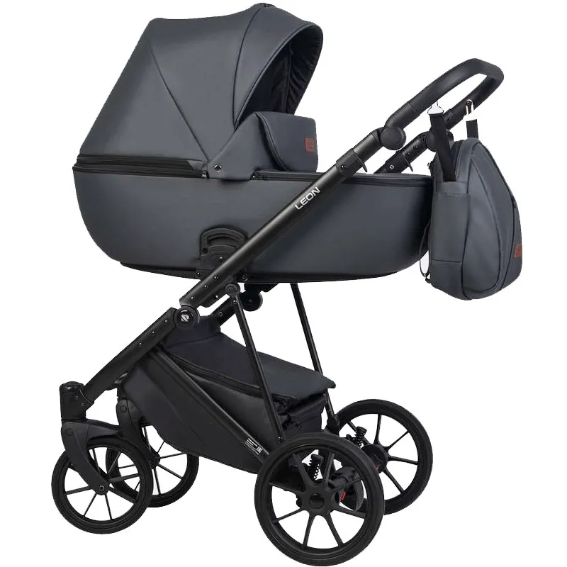 Модель коляски 2 в 1 Riko Basic Leon изготовлена из эко-кожи, что придаёт ей стильный внешний вид и делает её экологически безопасной.