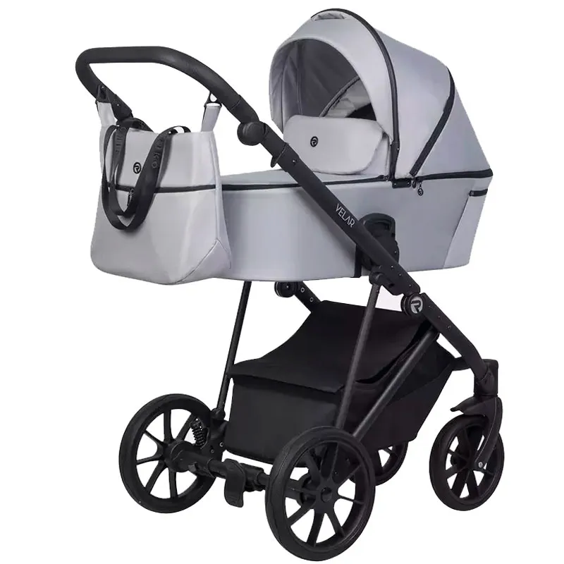Каркас коляски VELAR изготовлен из легкого алюминия, что позволяет складывать её вместе с прогулочным блоком, как в направлении вперёд, так и назад. Это инновационное решение значительно упрощает жизнь родителям. Каркас комплектуется вместительной корзиной для покупок, стильной сумкой, держателем для кружки и регулируемой ручкой, обеспечивая удобство во время прогулок. Амортизация задней подвески, подшипниковые полиуретановые колеса и настройка жесткости подвески гарантируют плавный ход, а передние поворотные колеса с блокировкой облегчают маневрирование. Центральный стояночный тормоз завершает систему безопасности этой продуманной модели.