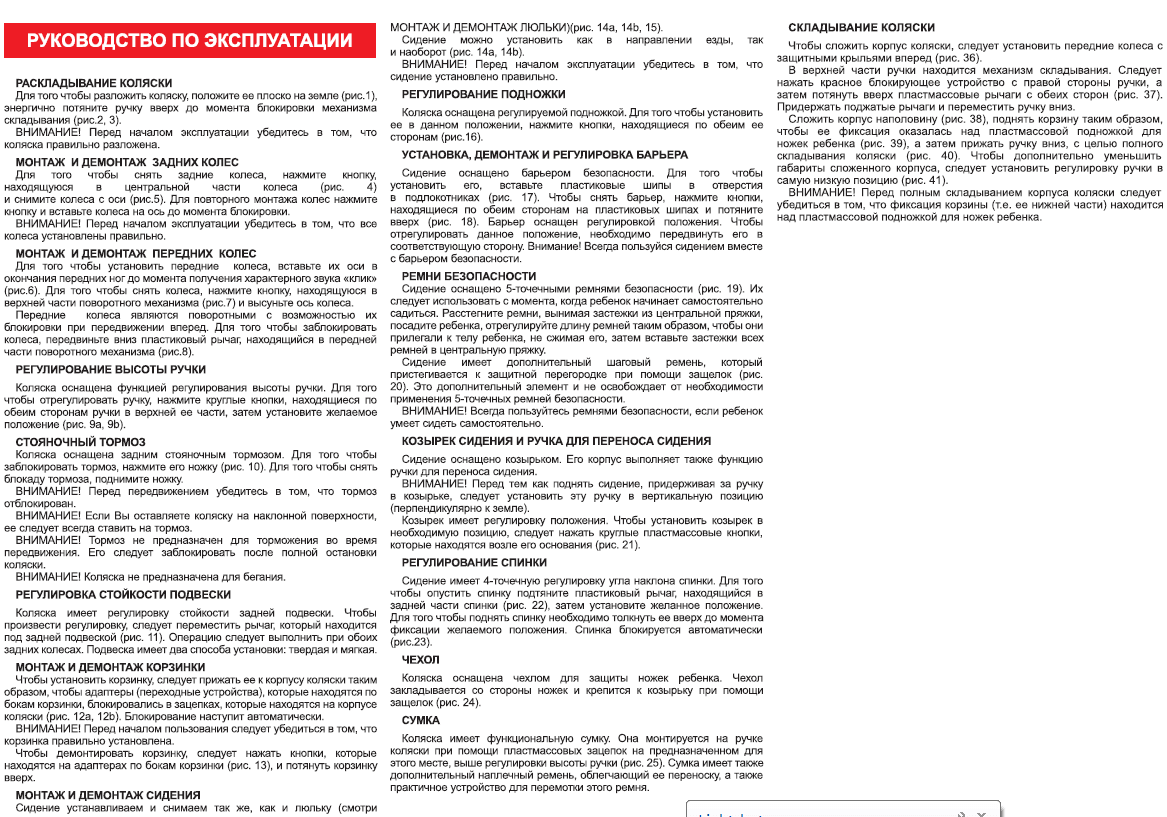 Эта коляска состоит из трех основных модулей: люльки для новорожденных, прогулочного блока для малышей постарше и автомобильного кресла для еще большего удобства и безопасности. Люлька коляски имеет большое и удобное внутреннее пространство, что позволяет малышу чувствовать себя комфортно даже в холодное время года. Прогулочный блок коляски оснащен регулируемой спинкой, что позволяет подобрать наиболее удобное положение для ребенка.