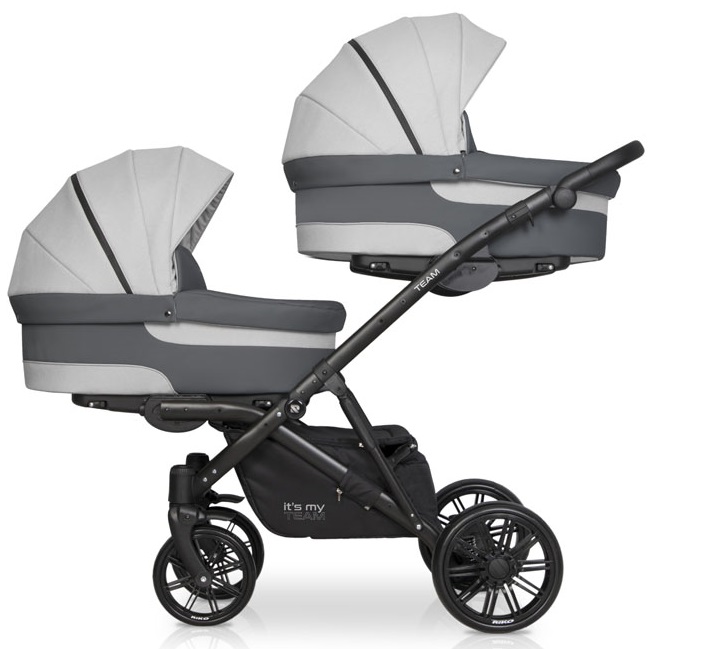 Коляска Riko Team — это продуманная и качественная коляска для двоих детей с рождения до 3-4 лет, так же может использоваться для погодок. На раму можно ставить любую комбинацию блоков: 2 люльки, 2 прогулки, люлька и прогулочный блок. При этом каждый блок ставится в двух направлениях относительно дороги и не зависит от направления другого блока. Это коляска представлена на компактной раме, специально усиленной для использования сразу для двоих детей. Такая рама позволяет молодой маме без труда заезжать на любые пандусы, легко проезжать в подъезде и помещаться в лифт. Для удобства родителей предусмотрены регулировка высоты ручки, вместительная корзина для детских принадлежностей или покупок, 2 сумки для мамы.