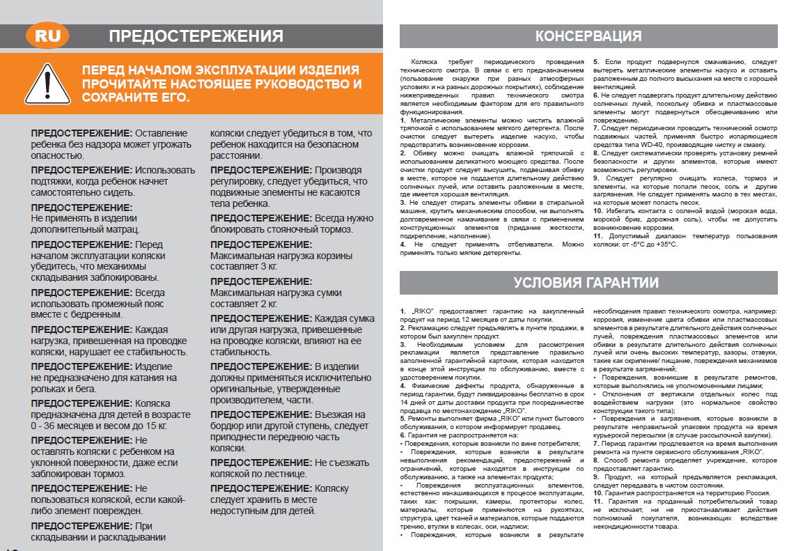 Коляска Riko Team оснащена бескамерными колесами нового поколения, с шинами из полиуретана. Они обеспечивают такую же амортизацию, как камерные, но они гораздо легче, более устойчивы к истиранию и перепадам температур, а отсутствие внутренней камеры, делает их практически не поддающимися износу. Передние поворотные колеса фиксатором делают ее маневренной и легкоуправляемой. Задние колеса, обеспечивают хорошую проходимость и позволяют преодолевать любые препятствия по бездорожью на прогуле. Регулируемая родительская ручка может подстроиться под любой рост. Рама коляски очень компактно складывается, что позволяет брать ее с собой в поездку или за покупками.