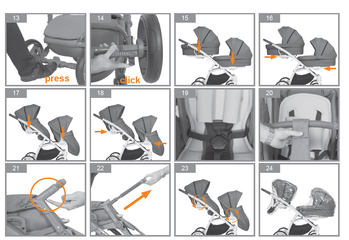 Комфортные и удобные прогулочные блоки коляски Riko Team для подросших малышей обеспечат лучшие условия для увлекательных прогулок и познания окружающего мира. Оба малыша могут удобно разместиться на отдельных сиденьях. Для комфорта малышей спинки сидения и подножки регулируются в нескольких положениях по наклону, создавая полноценное спальное место. Коляска Riko Team оснащена 5-ти точечными ремнями безопасности и съемные бампера с мягкой обивкой для предотвращения выпадения малышей из коляски. Регулируемый капюшон обеспечит надежную защиту от солнца, ветра и осадков. На зиму в комплекте имеются утепленные накидки на ножки.