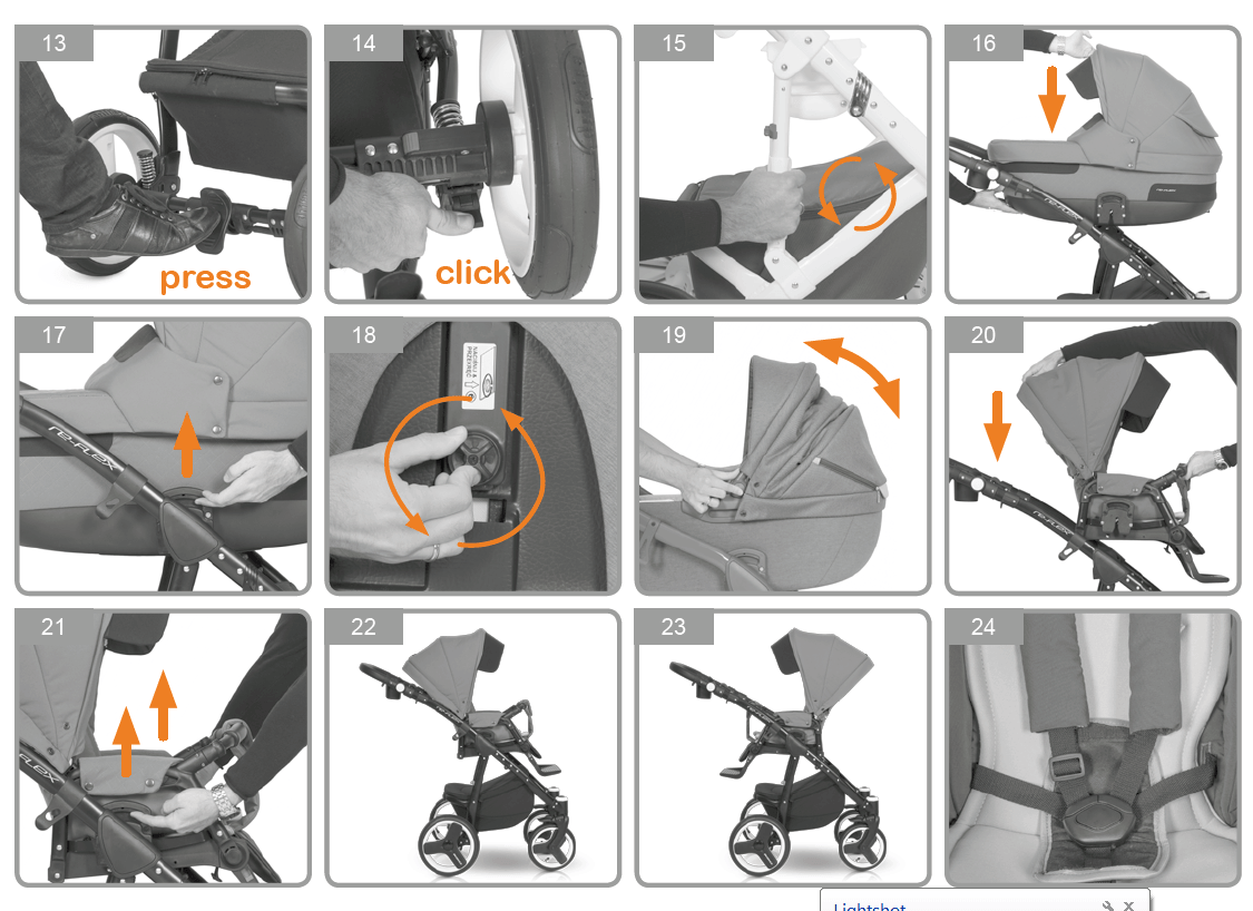 габариты коляски с установленной люлькой (Д*Ш*В) — 102*58*117 см.;
