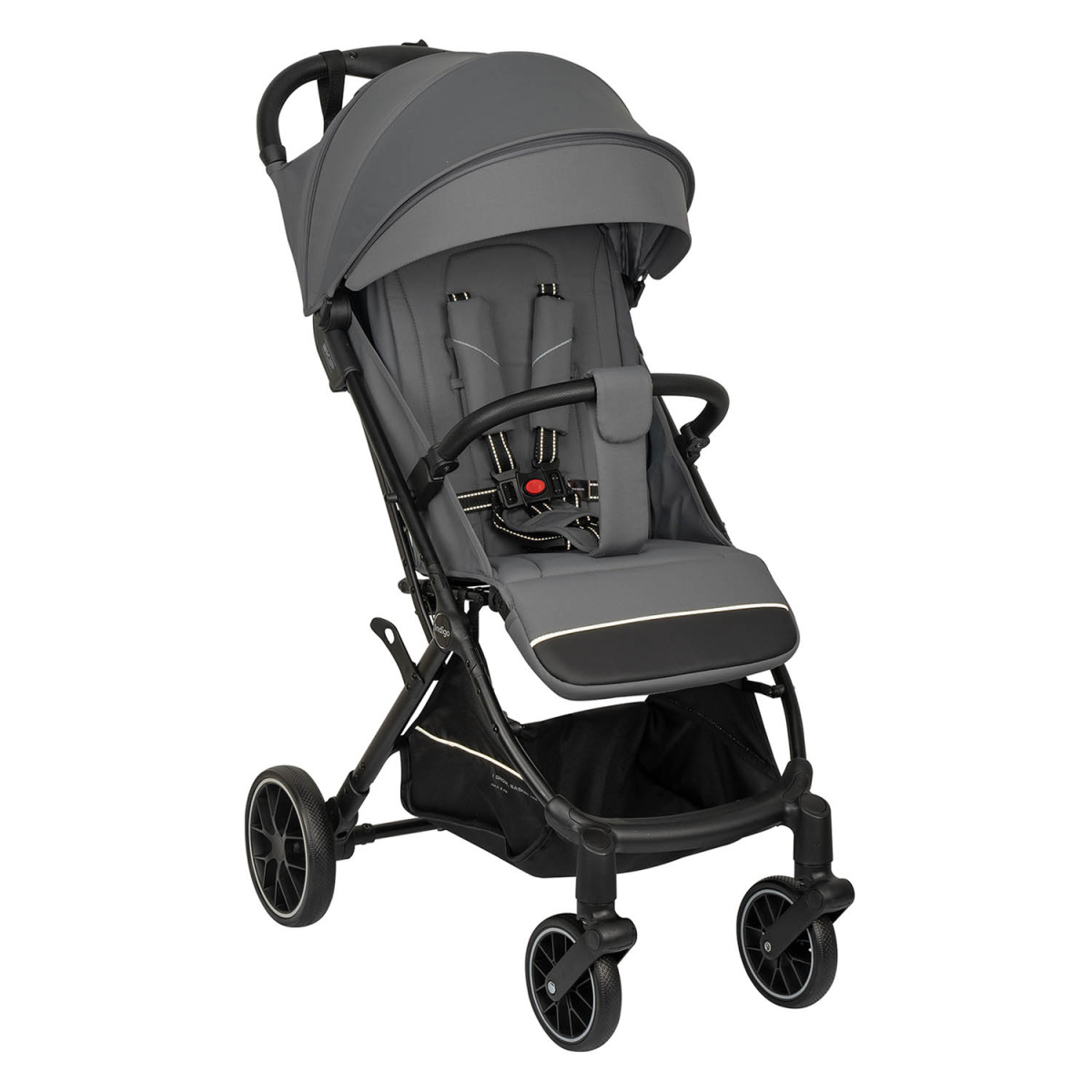 Безопасность во время прогулок обеспечивают 5-точечные ремни безопасности, съемный бампер и дополнительный страховочный ремешок для родителей, который помогает надежно контролировать коляску во время движения.