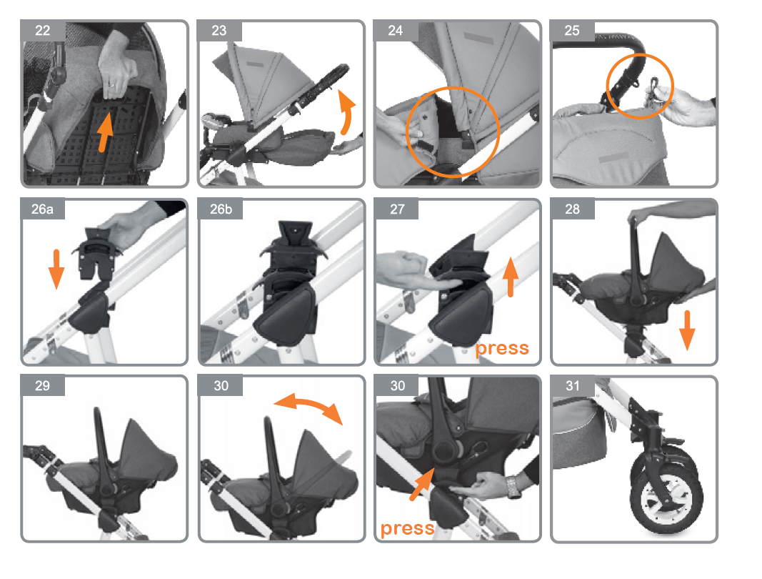 ➢ ручка на капюшоне для удобного переноса люльки с ребенком;