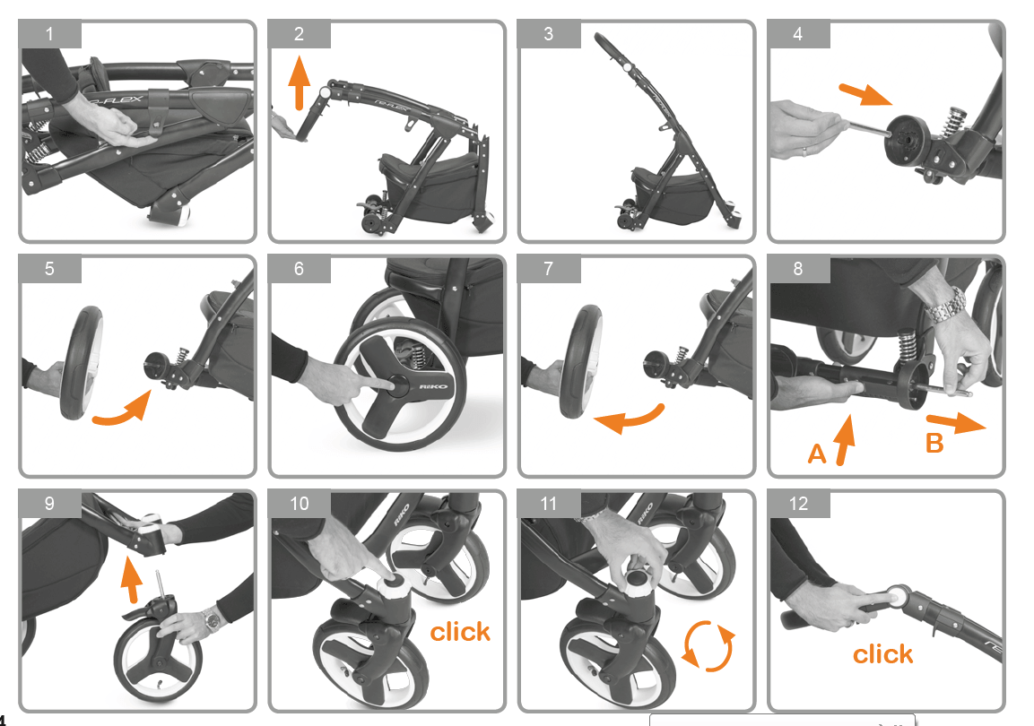 Передние поворотные колеса коляски Riko Villa фиксатором делают ее маневренной и легкоуправляемой. Задние колеса, обеспечивают хорошую проходимость и позволяют преодолевать любые препятствия по бездорожью на прогуле. Регулируемая родительская ручка может подстроиться под любой рост. Рама коляски очень компактно складывается, что позволяет брать ее с собой в поездку или за покупками.