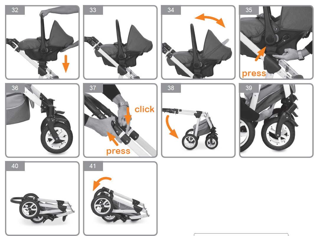 ➢ габариты коляски с установленной люлькой (Д*Ш*В) — 105*58*135 см.;