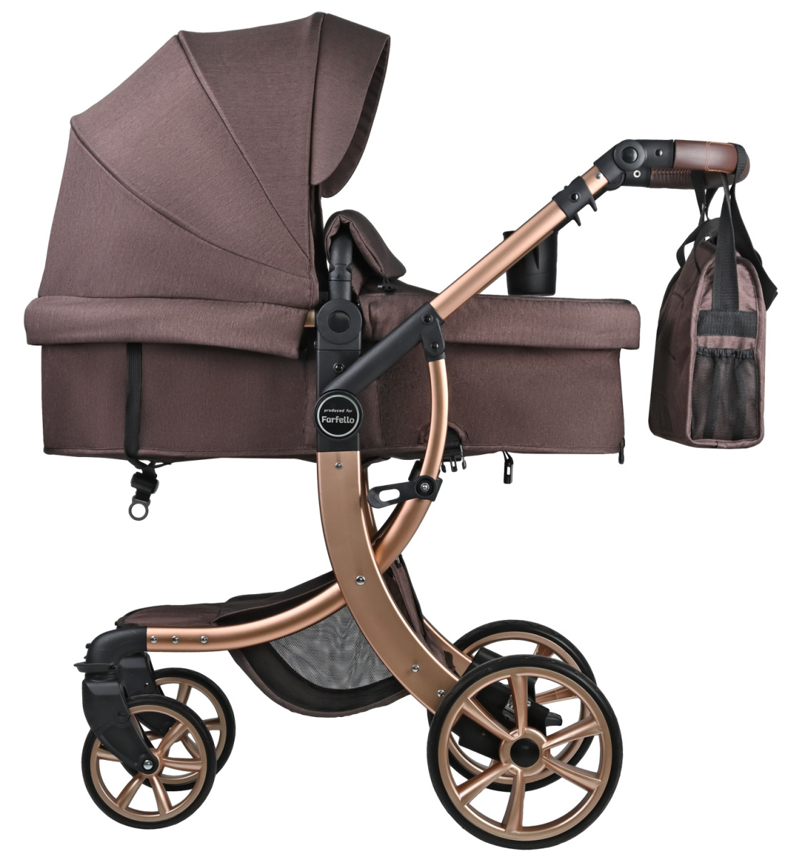 Коляска трансформер Farfello Aimile Original New Gold (Шоколадный NDG-3) - выполненная на стильной золотой раме. Коляска Aimile Original - это по-прежнему самая популярная коляска трансформер, лёгкая, стильная, манёвренная.