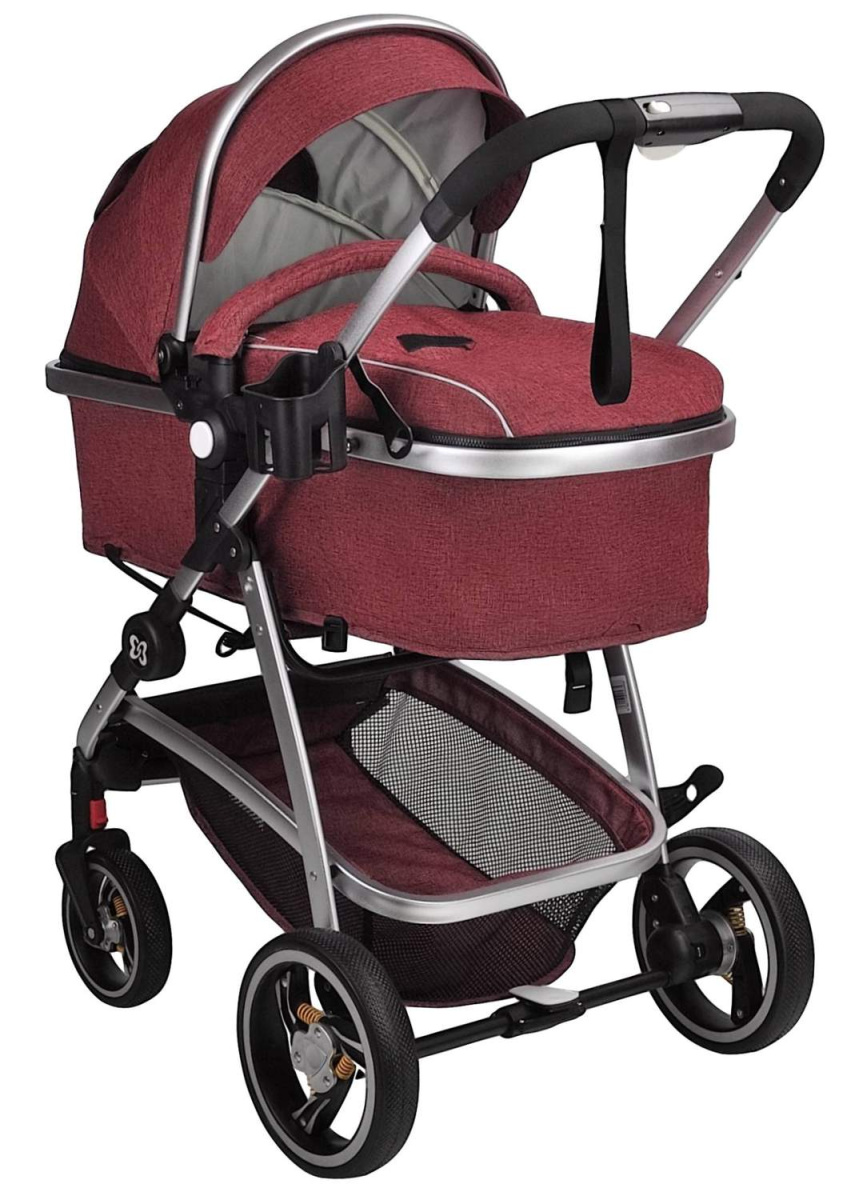 Прогулочная коляска трансформер Farfello Pristina (Рубиновый PS-13) с реверсивным блоком и возможностью трансформации до люльки. Трансформация из прогулочного типа в спальный в одно движение!