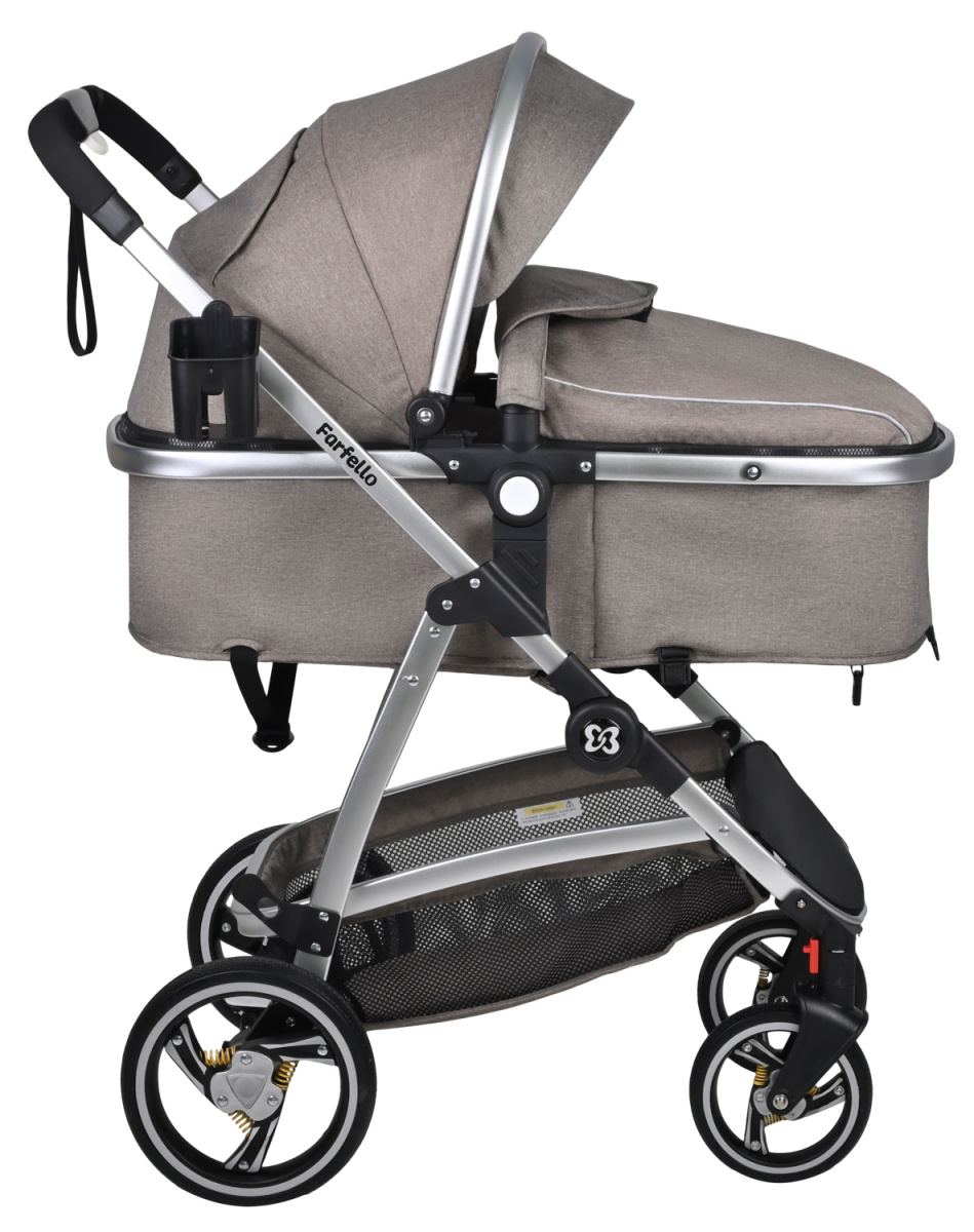 Прогулочная коляска трансформер Farfello Pristina (Коричневый PS-14) с реверсивным блоком и возможностью трансформации до люльки. Трансформация из прогулочного типа в спальный в одно движение!